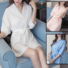 欧洲站春装韩版中长款衬衫女长袖修身百搭上衣白衬衣性感睡衣裙潮