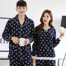 秋冬新款情侣睡衣纯棉男士长袖开衫女韩版可爱小熊套头家居服套装