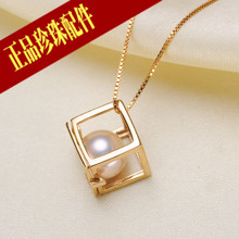 DIY配件 S925纯银珍珠吊坠空托 魔方款项链坠女 可搭配8-9mm圆珠