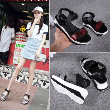 金特 百丽坡跟凉鞋女夏季运动休闲厚底松糕鞋防水台中跟摇摇鞋女