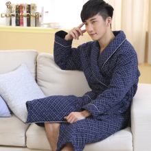 多俏美秋冬季男士浴袍加厚保暖睡衣纯棉夹棉睡袍长款全棉浴衣男款