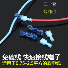 T2型接线端子 免破线无损快速电线线夹卡子+尼龙插片30套蓝色线夹