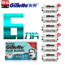 10盒包邮 超级蓝吉列手动双面剃须刀老式不锈钢双面刀片5+1片装