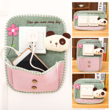 包邮卡通小熊布艺创意带口袋开关套 开关贴棉麻插座套墙贴保护套