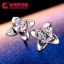金海湾银楼四叶草耳钉925银饰品简约耳环女韩国不易过敏生日礼物