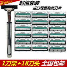 美国进口双层剃须刀片男士手动旋转水洗刮胡刀片1刀架+18刀头包邮