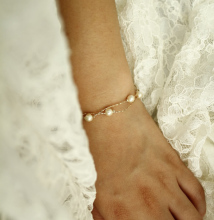 双层珍珠手链 手镯18K镀金女韩版复古时尚饰品多层韩国