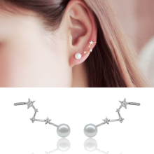 925纯银针珍珠耳钉 气质耳排 个性 韩国星星耳钉女五角星耳环日韩