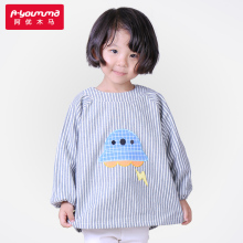 阿优木马秋冬儿童罩衣防水反穿衣宝宝罩衣围裙围兜长袖画画吃饭衣