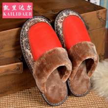 牛皮棉拖鞋男女居家防滑保暖室内木地板海宁真皮家居拖鞋 冬季