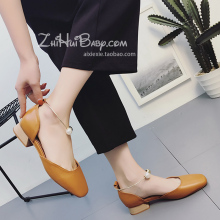 2017春夏季新款中空包头凉鞋女粗跟韩版时尚百搭复古包跟中跟女鞋