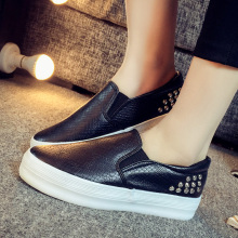 2017春季新款韩版潮皮面帆布鞋一脚蹬懒人鞋女乐福鞋百搭学生秋鞋