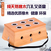 实木六孔艾灸盒 橡木制六孔温灸盒 6孔木质温灸器灸盒艾草盒