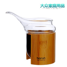 促销borun 公道杯加厚耐高温玻璃茶具配件 手抓竹公杯 龙舌茶海