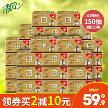 清风抽纸3层150抽20包原木纸巾金装卫生纸餐巾纸整箱批发包邮