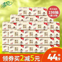 清风加量抽纸原木纯品卫生纸婴儿可用抽纸巾198抽16包2层整箱批发