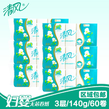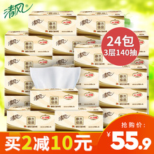 清风原木抽纸3层家用卫生纸餐巾纸面巾家庭装整箱批发140抽24包