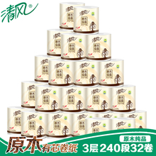 清风卷纸原木纯品32卷家用3层240段有芯卫生纸厕纸整箱批发卷筒纸