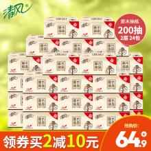 清风抽纸200抽抽取式婴儿面巾纸卫生纸餐巾原木24包整箱批发