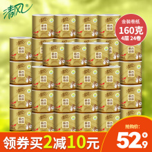 清风卷纸金装餐巾纸4层卫生纸家用厕纸24卷卷筒纸纸巾整箱批发