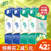 清风马蹄莲无心卷纸40卷3层卫生纸纸巾婴儿无芯卷纸家用整箱批发