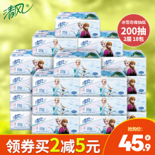 清风抽纸冰雪奇缘系列抽取式面巾纸200抽18包婴儿纸巾整箱批发