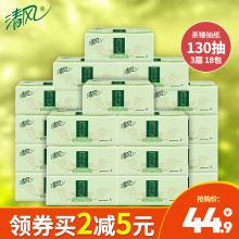 清风抽纸茶香3层面巾纸抽取式卫生纸整箱18包130抽