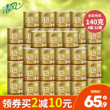 清风卷筒纸4层 金装有芯卷纸家用卫生纸32卷超厚纸巾厕纸整箱批发