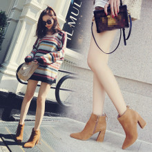 及裸靴女2015新款冬季韩版圆头粗跟短靴 侧拉链高跟马丁靴女 潮