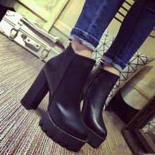 2015新款秋冬复古粗跟马丁靴 侧拉链超高短靴女