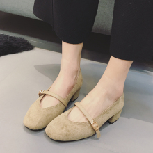 韩版方头玛丽珍鞋粗跟一字扣复古新款春季奶奶单鞋女中跟百搭浅口
