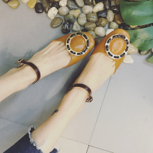 复古圆扣包头一字扣凉鞋女夏低跟粗跟百搭2017新款圆头时尚女鞋子