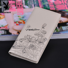 花花公子小清新女士长钱包 中国风荷花真皮钱夹 头层牛皮长款皮夹