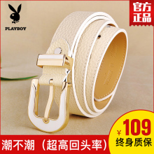 花花公子百搭女士皮带 加宽休闲真皮白色腰带 时尚装饰简约女裤带