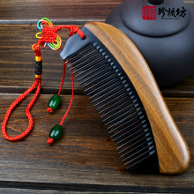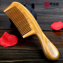 梳子 加厚檀木梳 天然绿檀木梳子 防静电护发按摩保健梳子 密齿梳