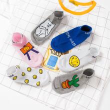 韩国ulzzang原宿中指贱猫卡通棉短袜子 男女情侣潮牌笑脸韩文船袜