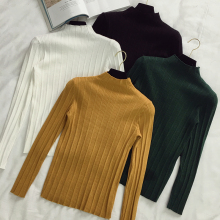 秋冬打底毛衣女2017早春新款韩版纯色半高领螺纹紧身长袖针织衫潮