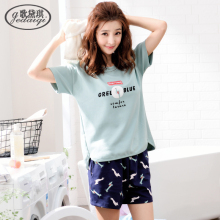 夏季新品睡衣女士家居服纯棉韩版可爱全棉短袖短裤可外穿青年套装