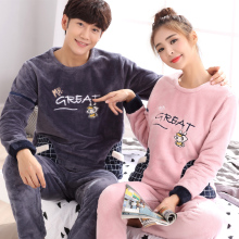 冬季保暖加厚情侣法兰绒睡衣韩版男女士长袖冬天珊瑚绒家居服套装