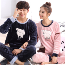 秋冬季加厚法兰绒情侣睡衣女长袖休闲可爱珊瑚绒男士家居服套装韩