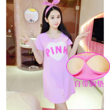 夏季带文胸垫裙子薄款睡衣女夏天甜美短袖睡裙公主休闲纯棉家居服