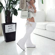 秋冬季新款韩版骑士靴平底坡跟长靴高筒女靴女鞋红色冬靴白色棉靴