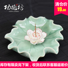 功德坊创意莲花线香陶瓷香炉香插 居室线香炉仿古香座荷花香盘
