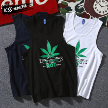 夏季日系胖子加肥加大码男装原宿枫叶印花运动沙滩民族风背心男潮
