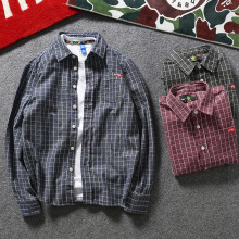 原宿日系复古休闲潮牌大码格仔格子衬衫男青少年学生寸衣长袖衬衣