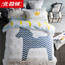 北极绒 纯棉床上四件套全棉双人简约卡通学生1.8m床床单床上用品
