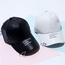 韩版原宿潮帽 皮质pu材质字母棒球帽铁环街舞男女潮搭弯沿鸭舌帽