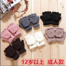 冬季男女半指针织翻盖手套百搭保暖加厚学生半边绒手套厂直销