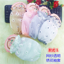 冬季新款双层透明蕾丝袖套欧根纱成人防污羽绒服套袖韩版时尚护袖