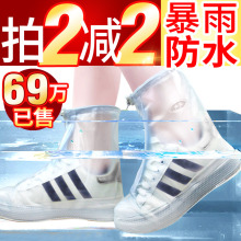 拍2付1 雨鞋套防雨防水男女加厚防滑耐磨加厚底儿童下雨天鞋套
